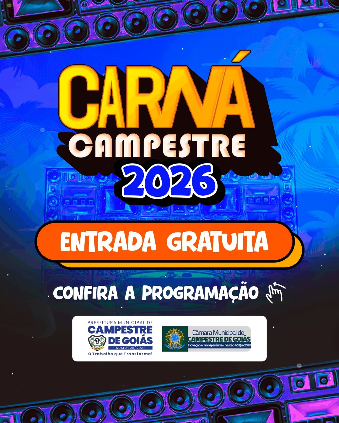 O evento Carná Campestre 2026 tem como objetivo promover lazer, cultura e entretenimento à população, garantindo acesso gratuito, valorização de artistas e fortalecimento das tradições carnavalescas do município.