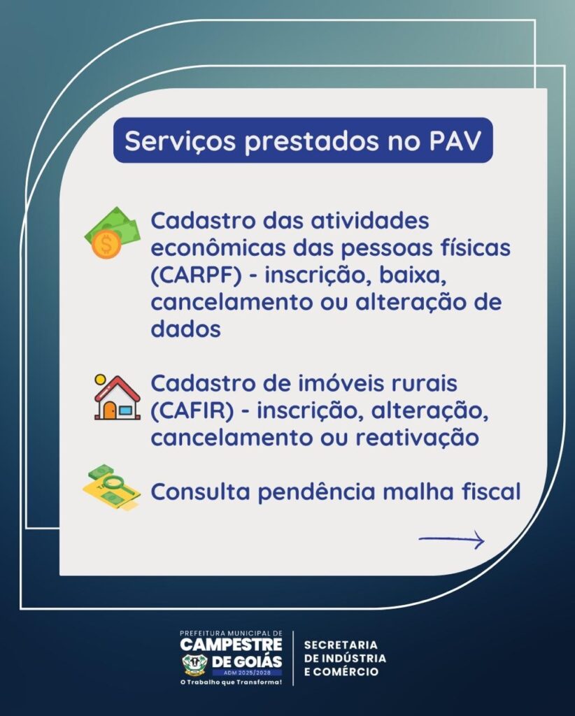 Confira alguns dos serviços disponíveis no PAV: